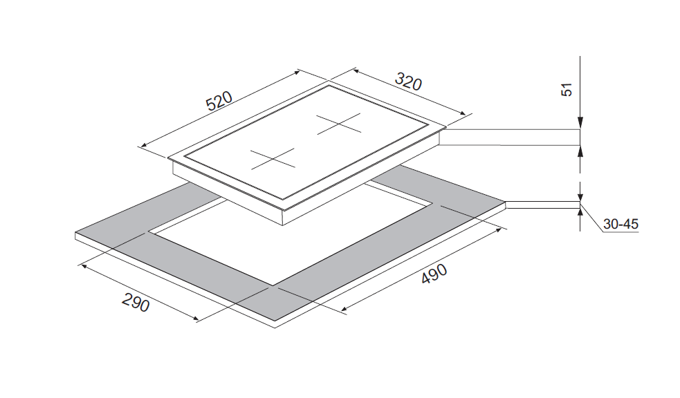 - Recess size for embedding (WхD) 290х490