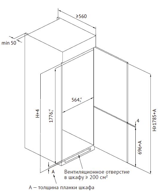- Recess size for embedding (WxHxD), mm 560х1785(+10)х560(+10)