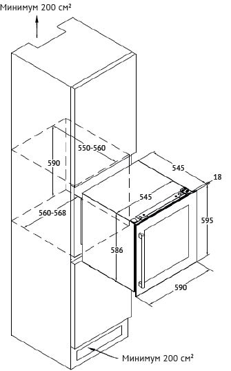 - Размеры встраивания В/Ш/Г 590х560х550
